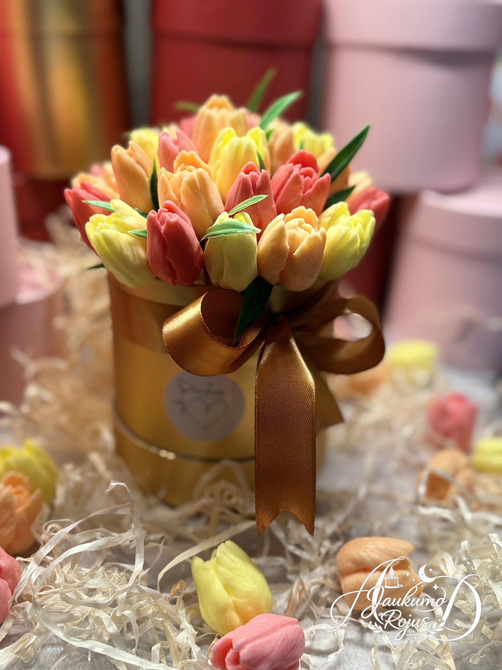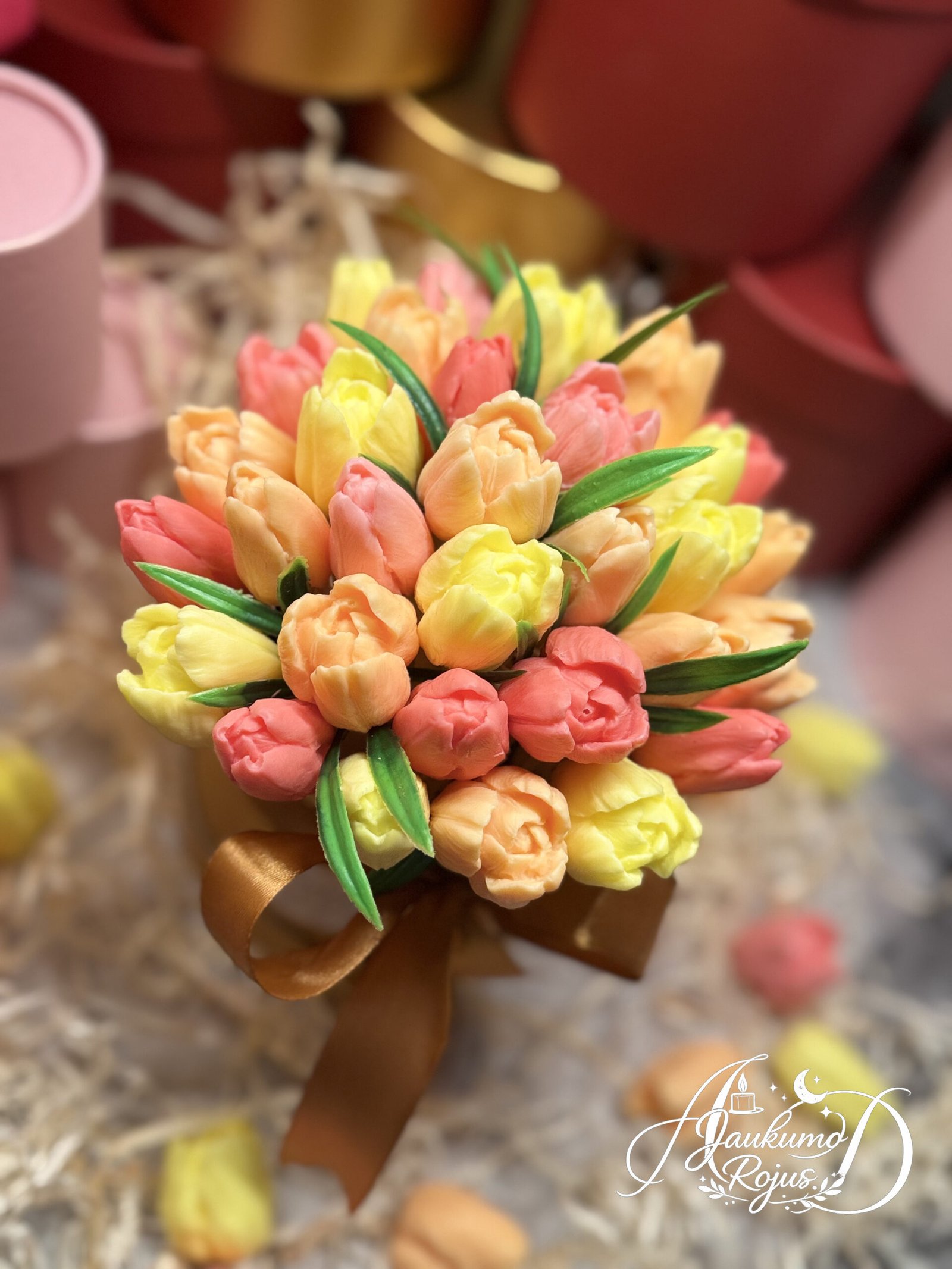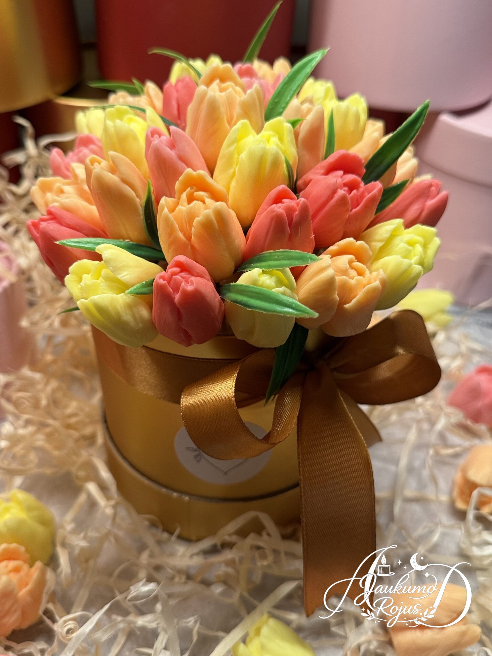 Kai puokštė kaip interjero detalė atsibos, ją galėsite drąsiai panaudoti pagal tiesioginę paskirtį, nes kiekviena tulpė – tai aukštos kokybės, kvepiantis rankų darbo muilas.