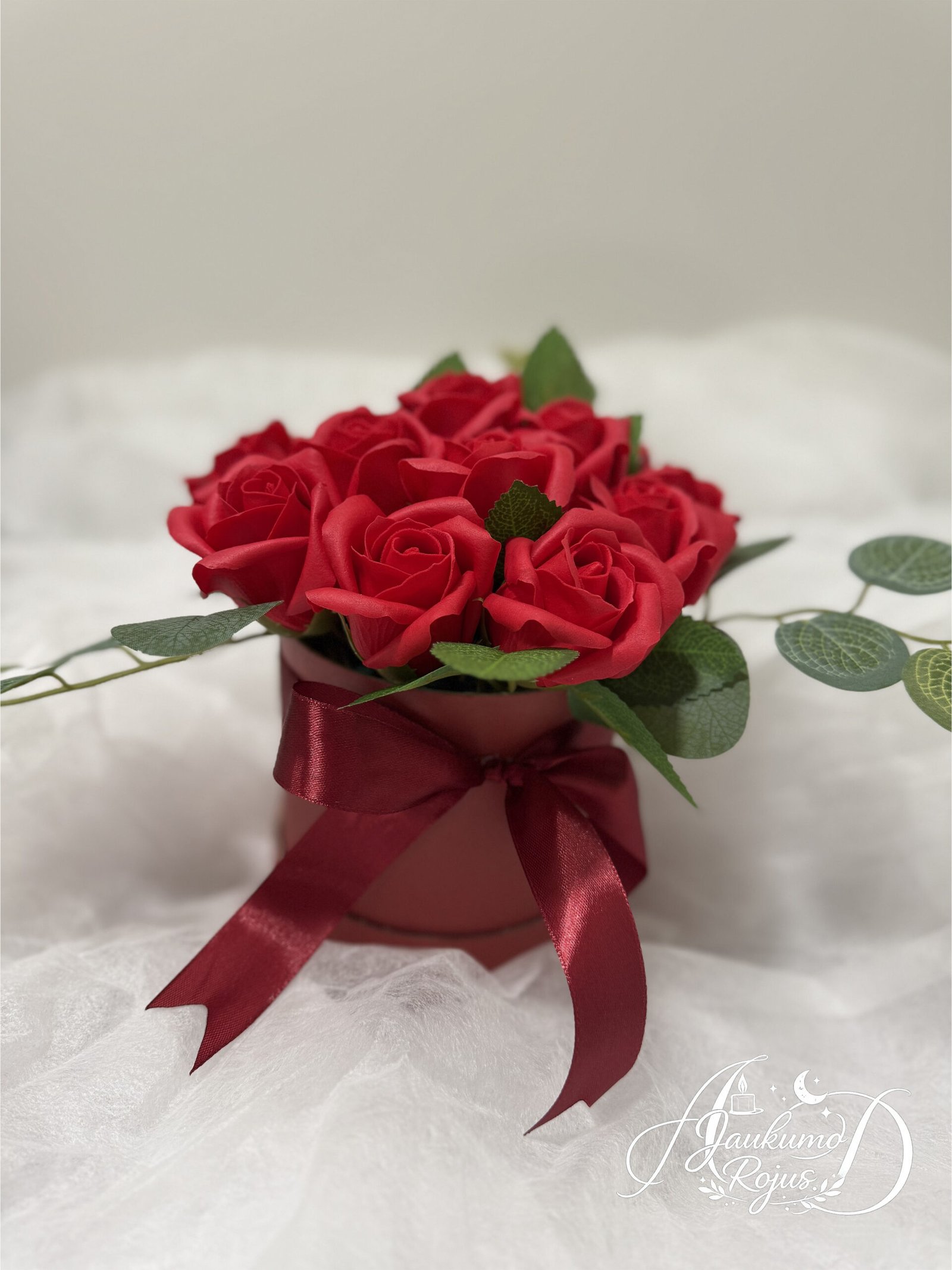 ⚠️ SVARBU ŽINOTI: Šios gėlės yra skirtos džiuginti akį kaip ilgalaikė interjero puošmena. Nors vizualiai jos primena muilo žiedus, jos nėra skirtos prausimuisi ar sąlyčiui su vandeniu. Saugokite puokštę nuo drėgmės, kad žiedai išliktų nepakitę.